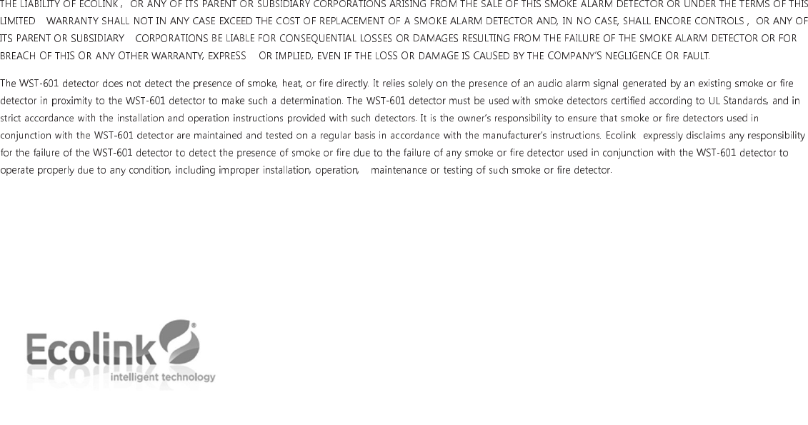 warranty, nor to assume for it any other warranty or liability concerning this product. The maximum liability for Ecolink under all circumstances for any warranty issue shall be limited to a