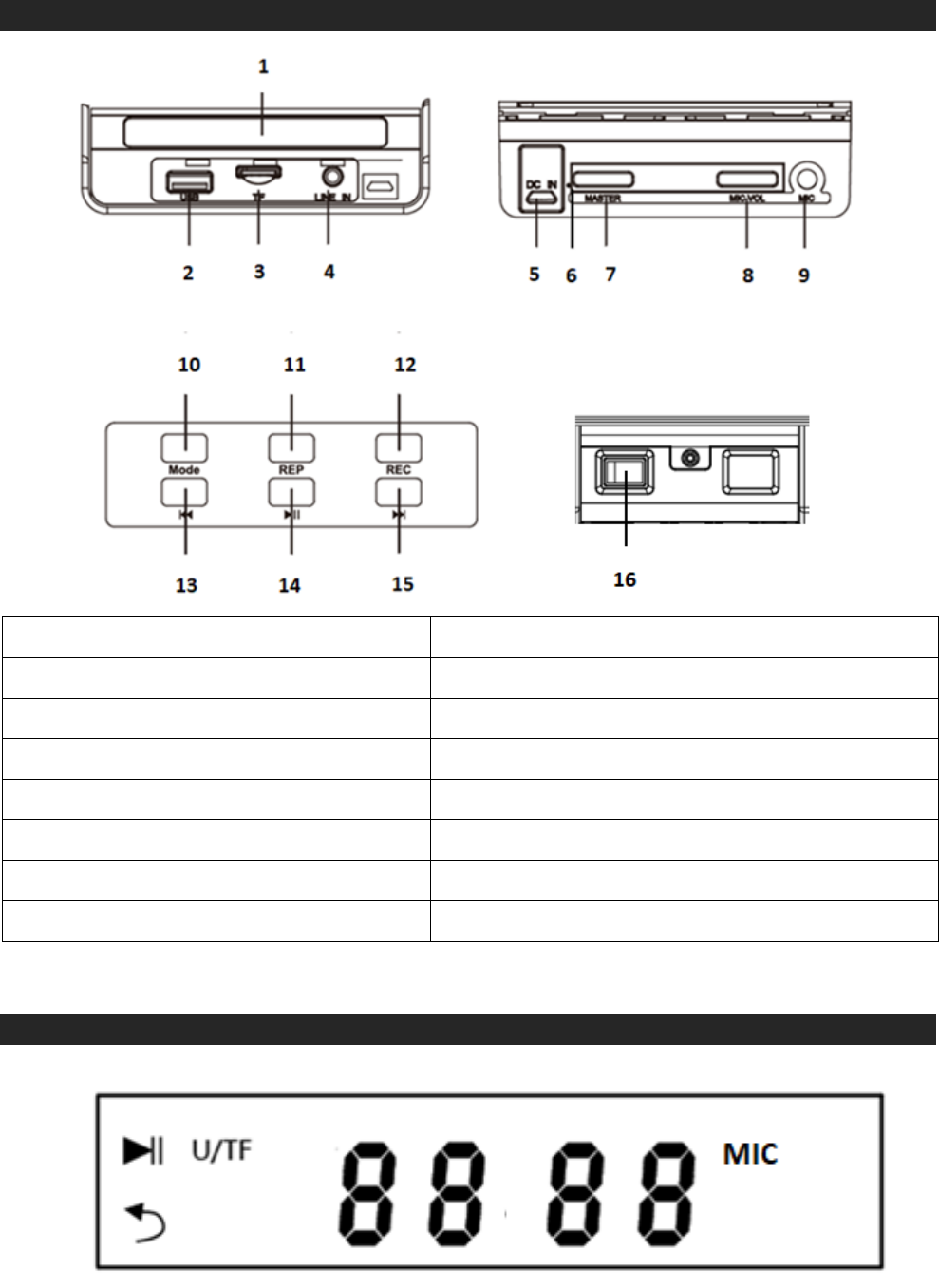 Insert the ¼” plug from your Microphone (not included) into the MIC jack, you will see MIC displayed