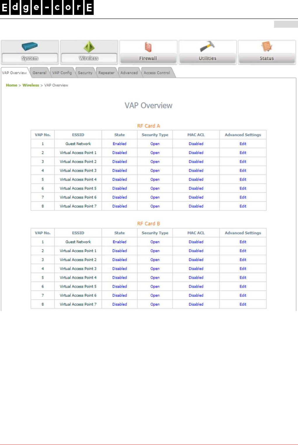 The ECW100 supports up to 8 virtual APs (VAPs) per radio.