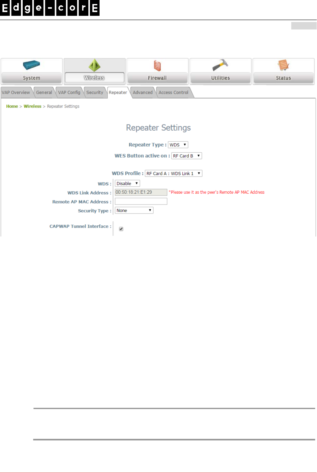 If you are using another ECW100 as the peer AP, simply repeat the above-mentioned steps to configure