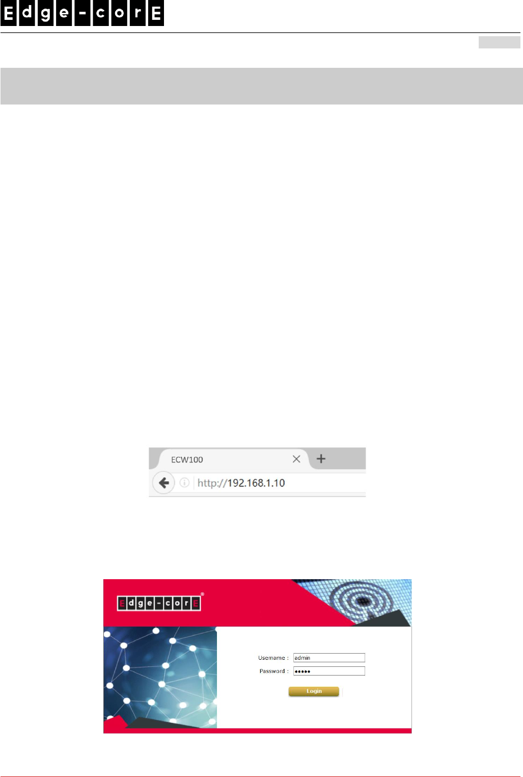 2. Launch the web browser on your PC by entering the IP address of ECW100 (http://192.168.1.10) at the