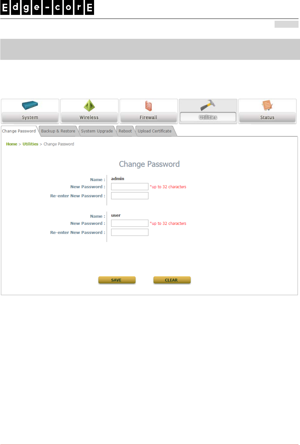 Click on the Utilities icon on the main menu, and select the Change Password tab.