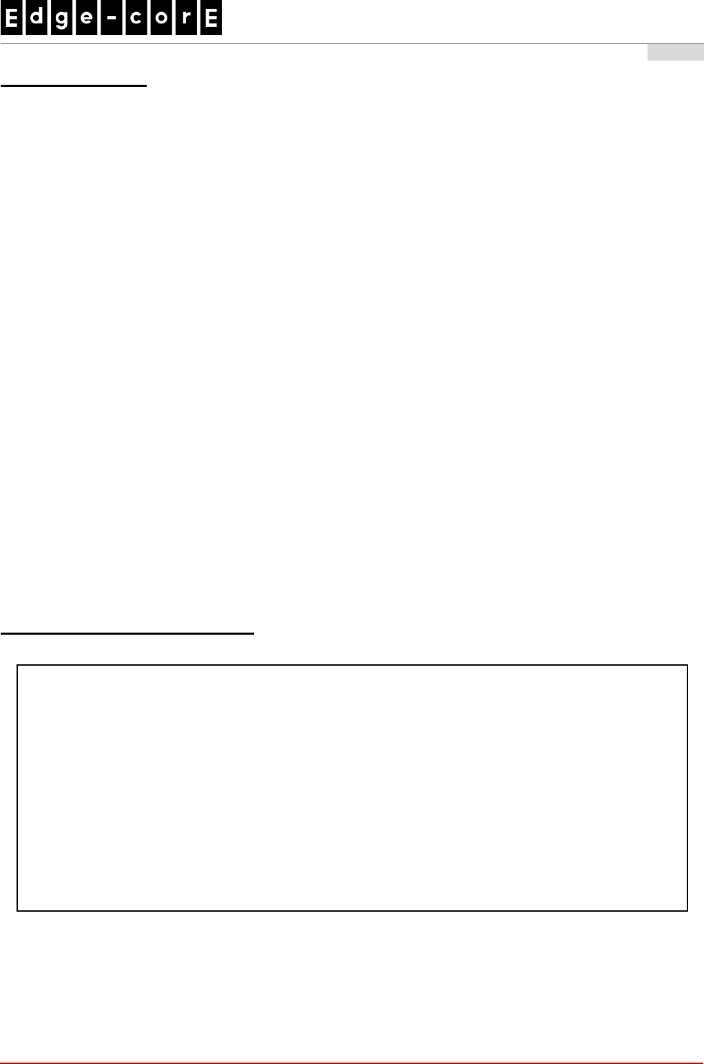 and supported by Edgecore Networks Corporation. may result in the equipment no longer being