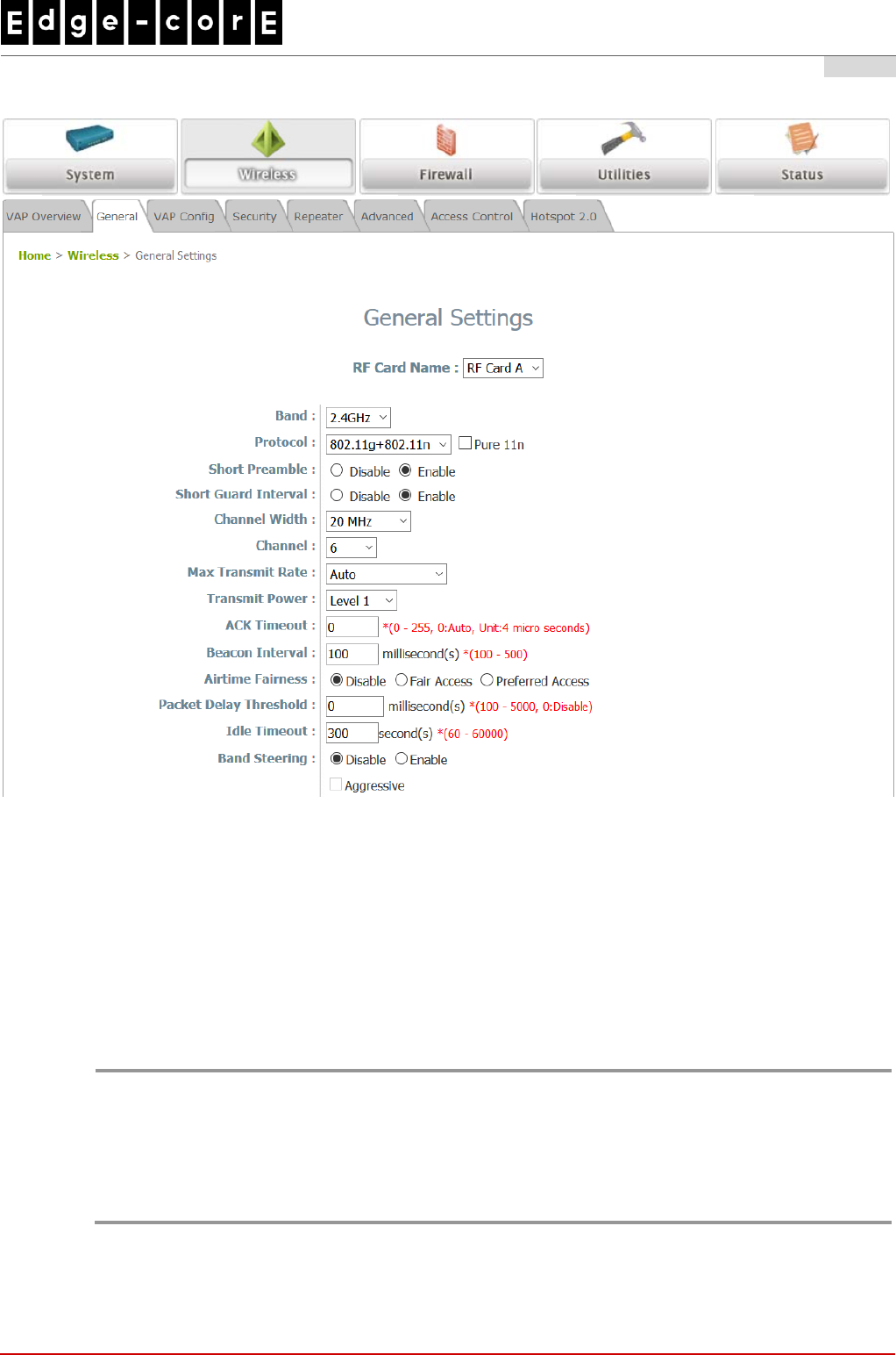 Wireless General Settings Page