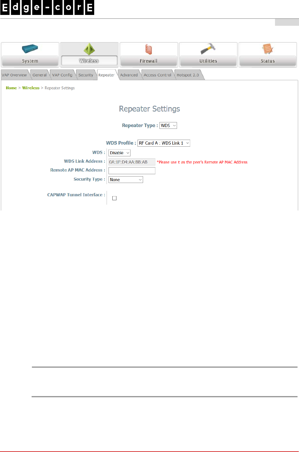If you are using another ECW5210-L as the peer AP, simply repeat the above-mentioned steps to configure