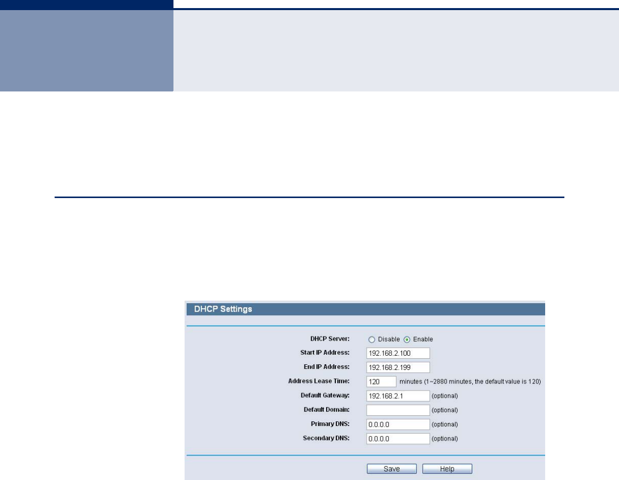 Choose menu “DHCP->DHCP Settings”, you can configure the DHCP Server