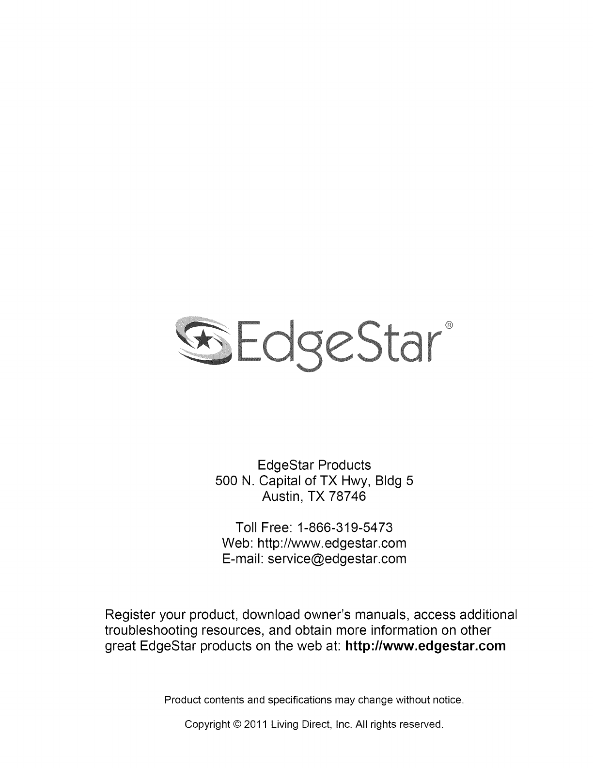 For more information on other great EdgeStar products on the web, go to http://www.edgestar.com