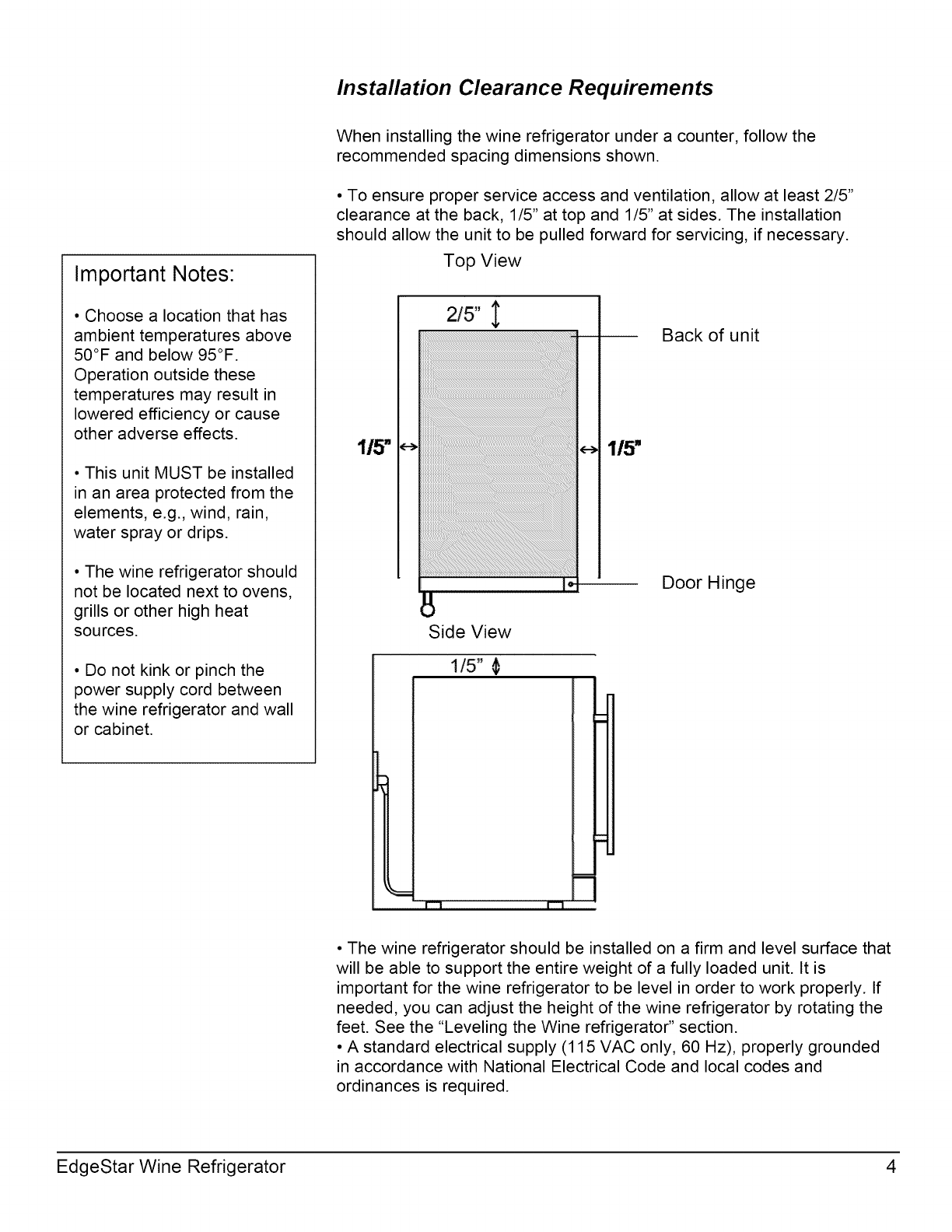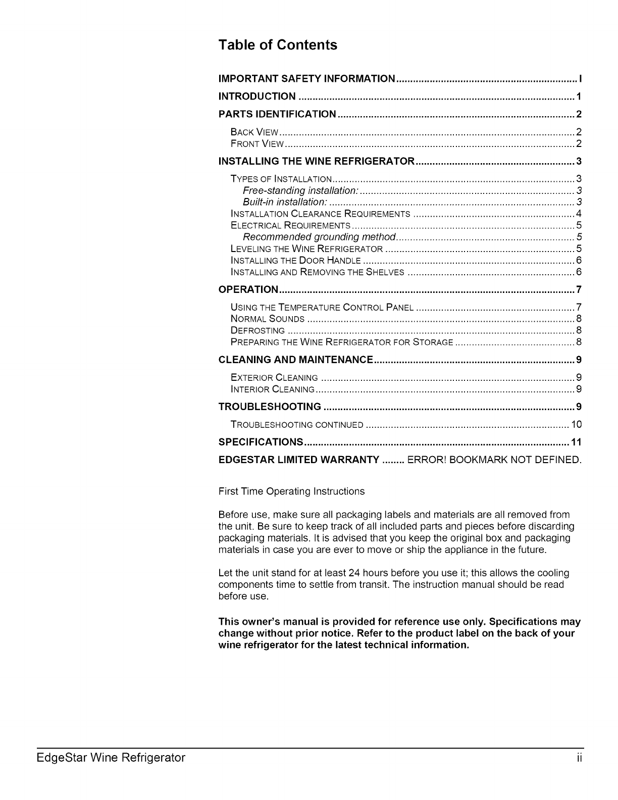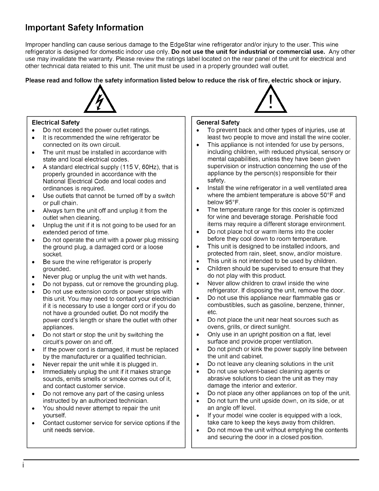 Improper handling can cause serious damage to the EdgeStar wine refrigerator and/or injury to the user. This wine