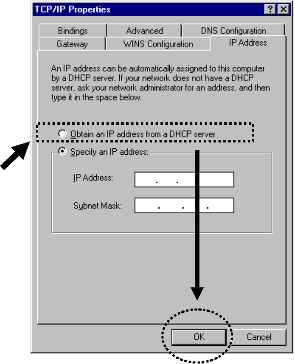 2-2-1 Windows 95/98/Me IP address setup