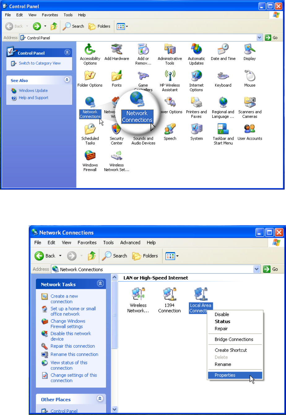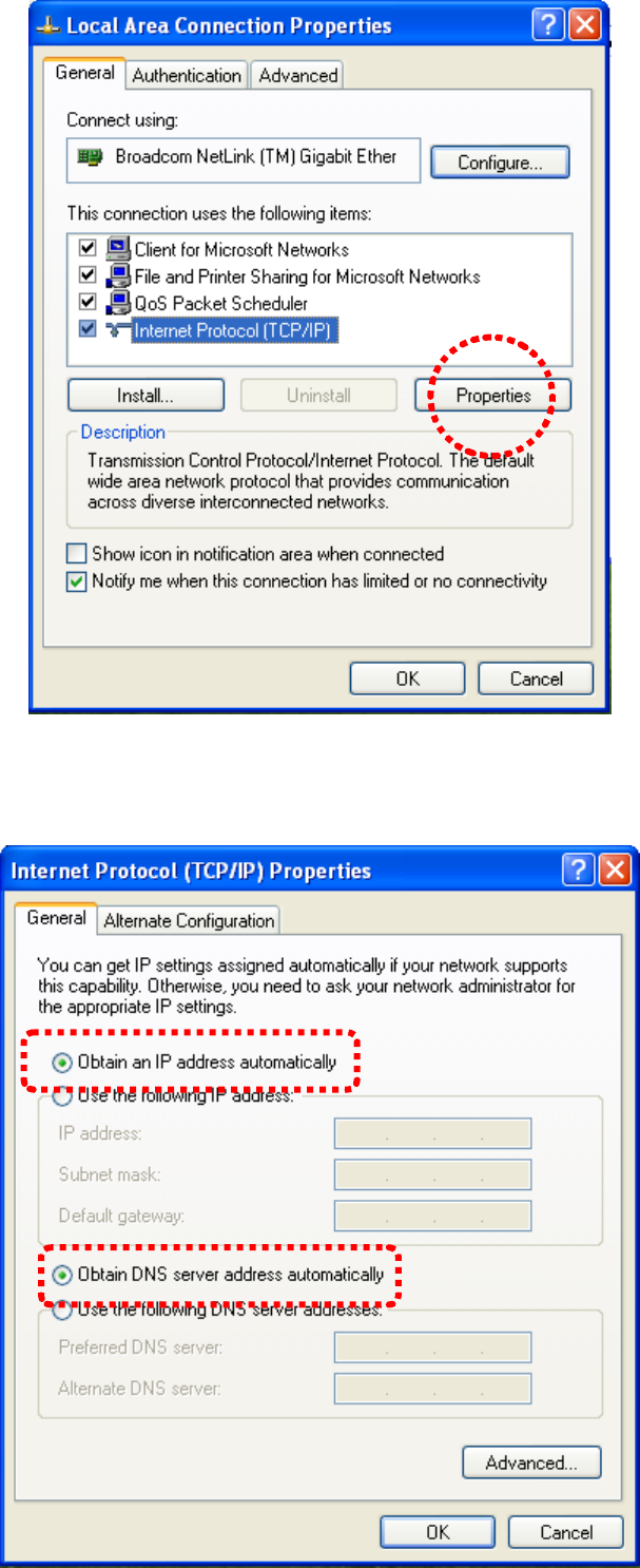 2-2-1 Obtain IP addresses automatically: Windows XP ..................................................................... 6