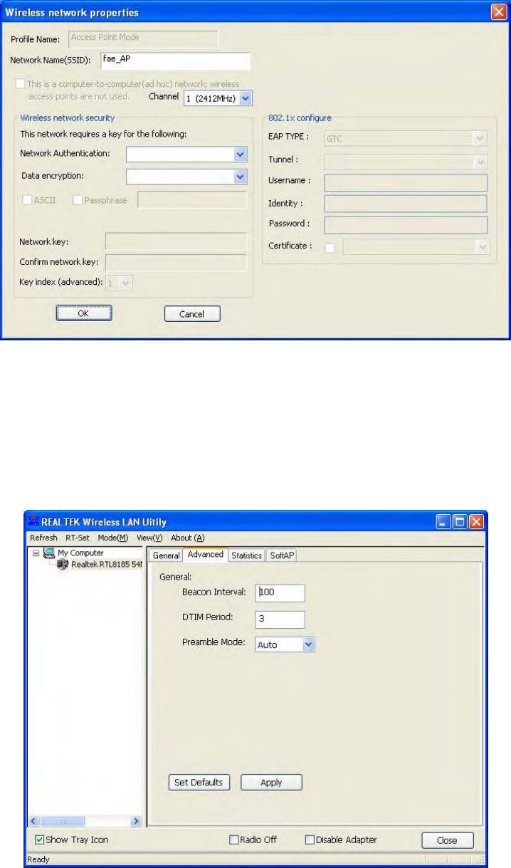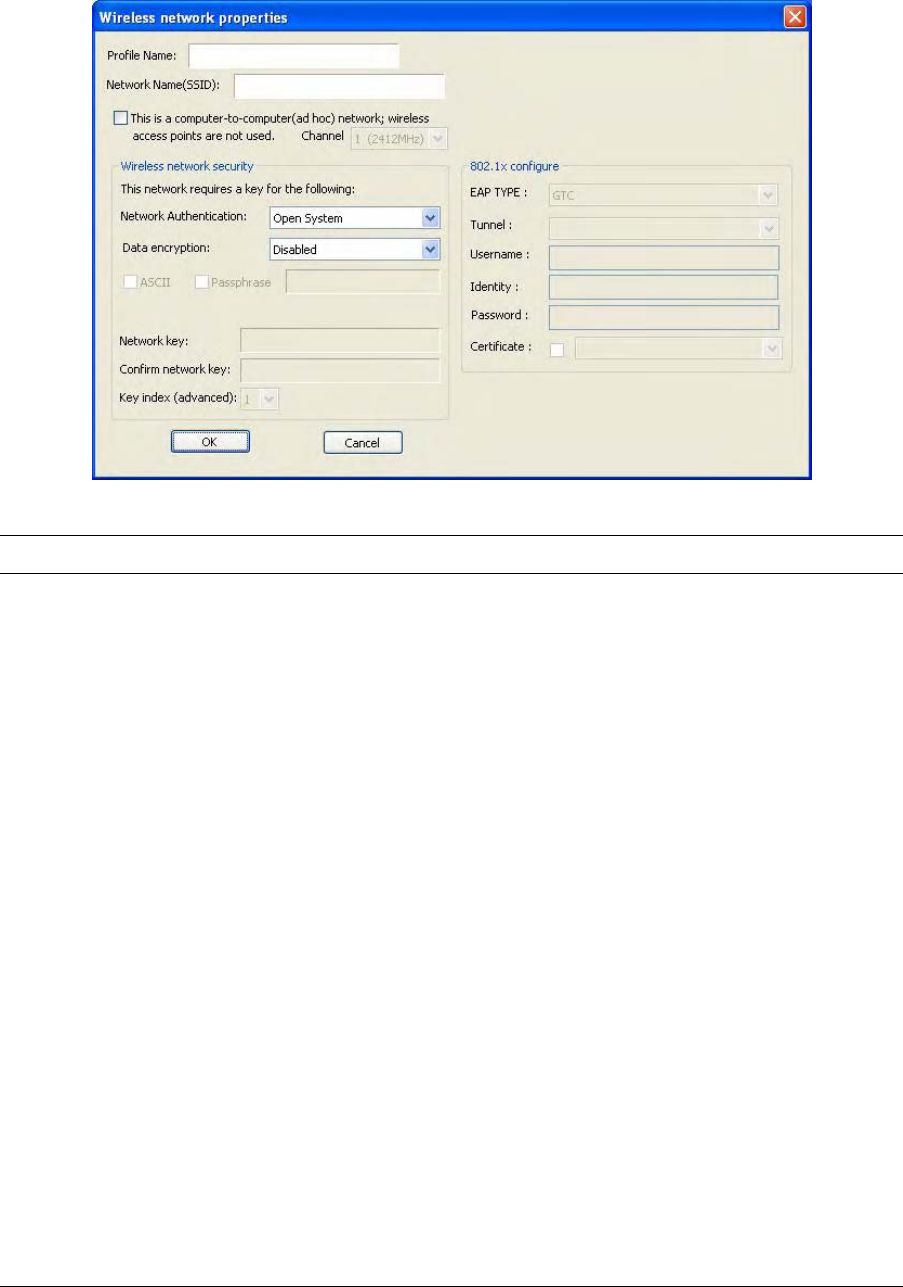 C. In the Wireless network properties dialog, please fill in the security settings for this wireless network