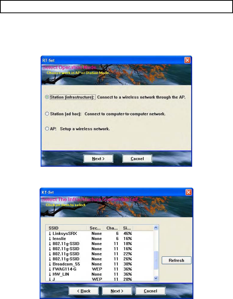 The RT-Set wizard can help users to connect to a wireless LAN or build an Ad-hoc wireless network.