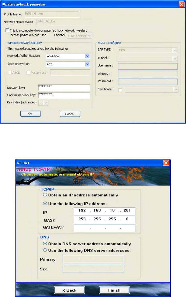 D. Please specify the IP settings for this wireless network and click the “Finish” button.