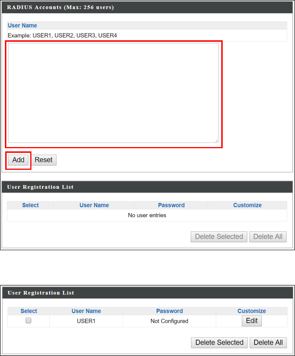 MACaddressentrieswillbelistedinthe“MACAddressFilteringTable”.Select