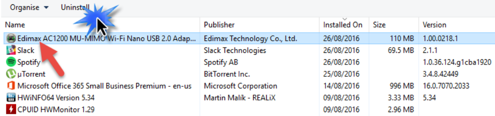3. Select Edimax AC1200 (or similar) and click Uninstall.