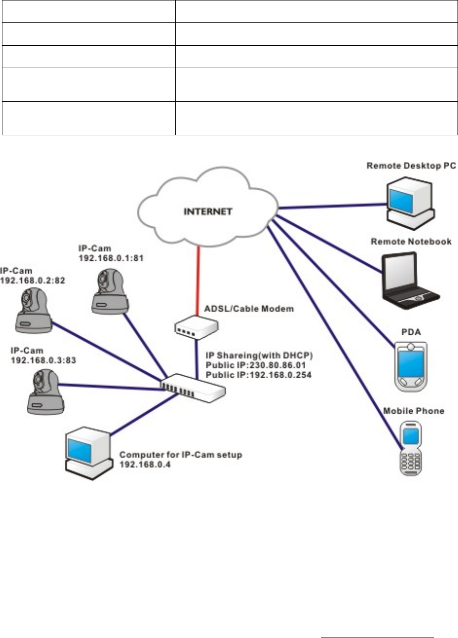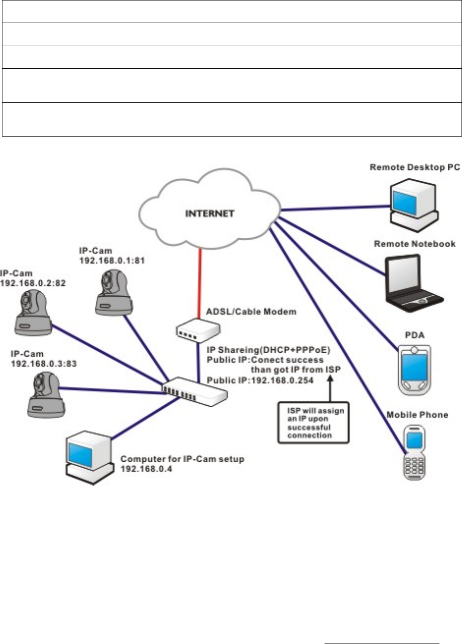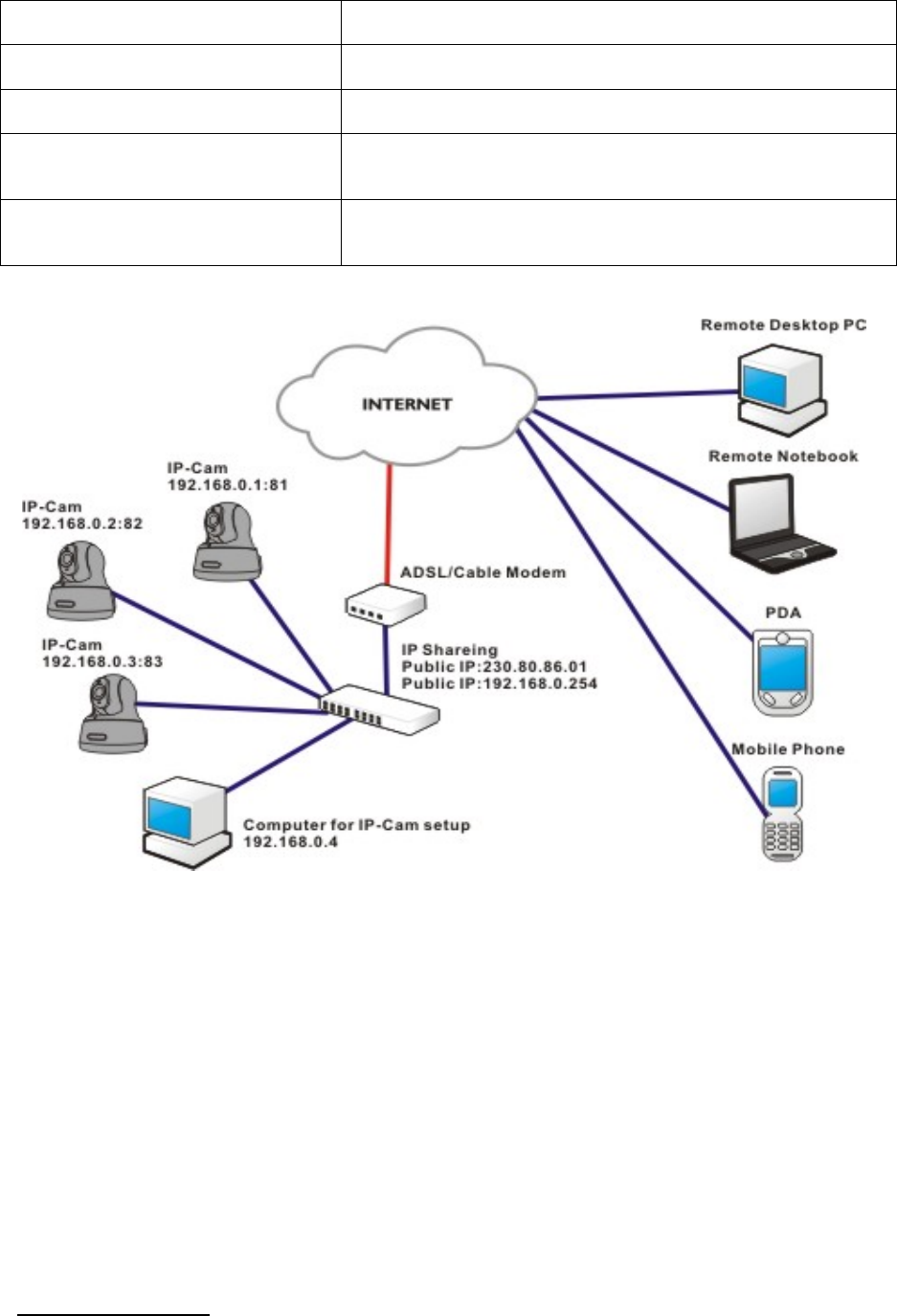 z For the setting of the Port switching in the IP sharing switch, please refer to the IP-Cam’s