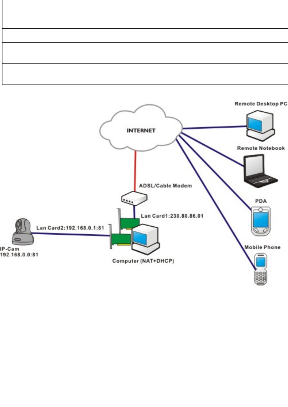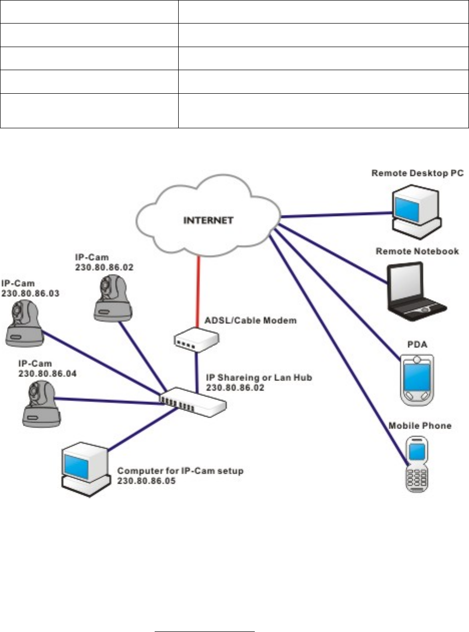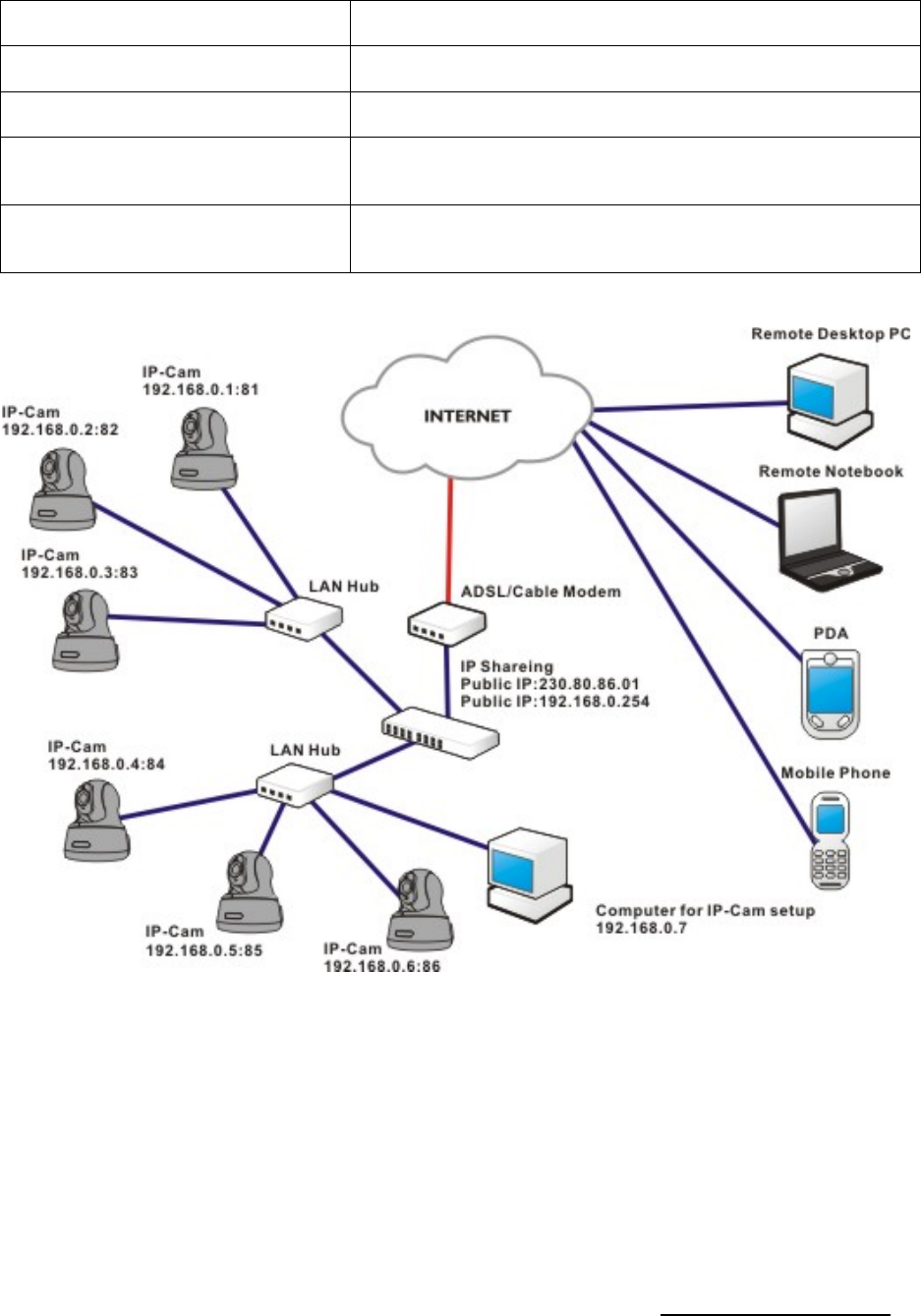 z For the setting of the Port switching in the IP sharing switch, please refer to the IP-Cam’s