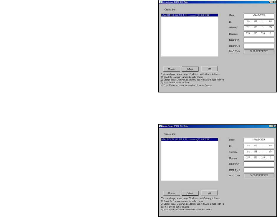 z Run ‘IPEDIT’ and locate the i-WATCHER’s IP address assigned by the ISP