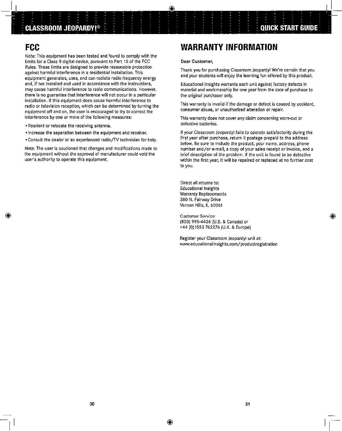 Educational Insights EI-8099 CLASSROOM JEOPARDY! User Manual