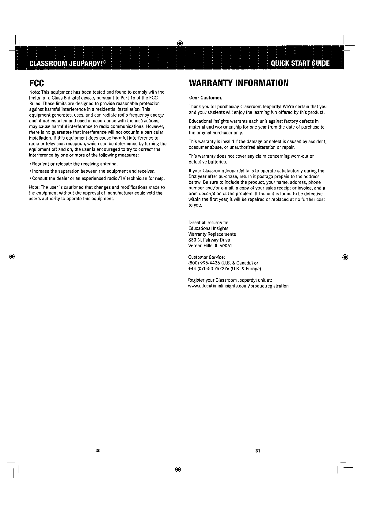 Educational Insights EI-8800 CLASSROOM JEOPARDY! User Manual