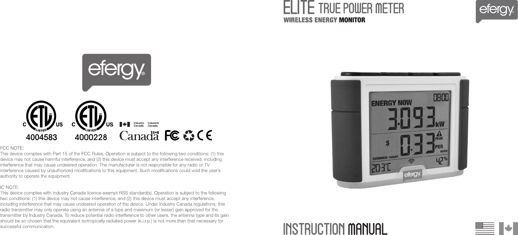 Efergy Technologies Limited ELITE TRUE POWER METER USERS MANUAL