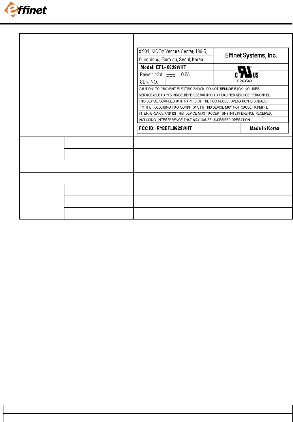 Model No. : EFL-0622WHT Engineering Specification Page : 7 of 9