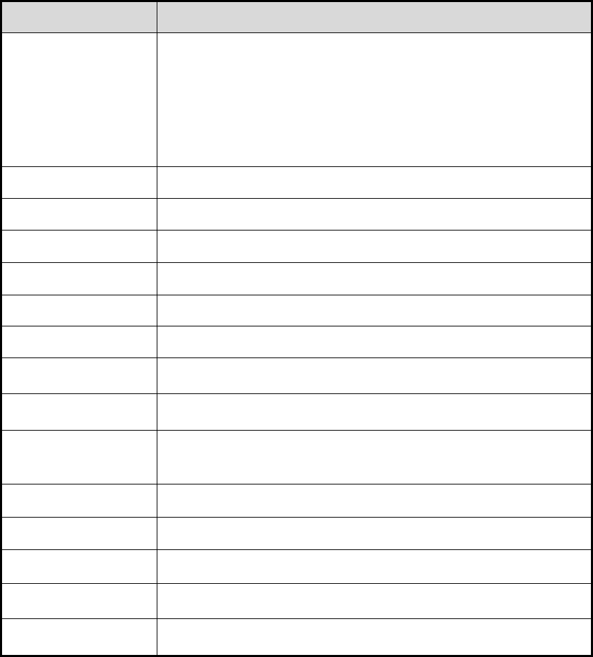 QUICK REFERENCE TABLE OF CHARACTERISTICS
