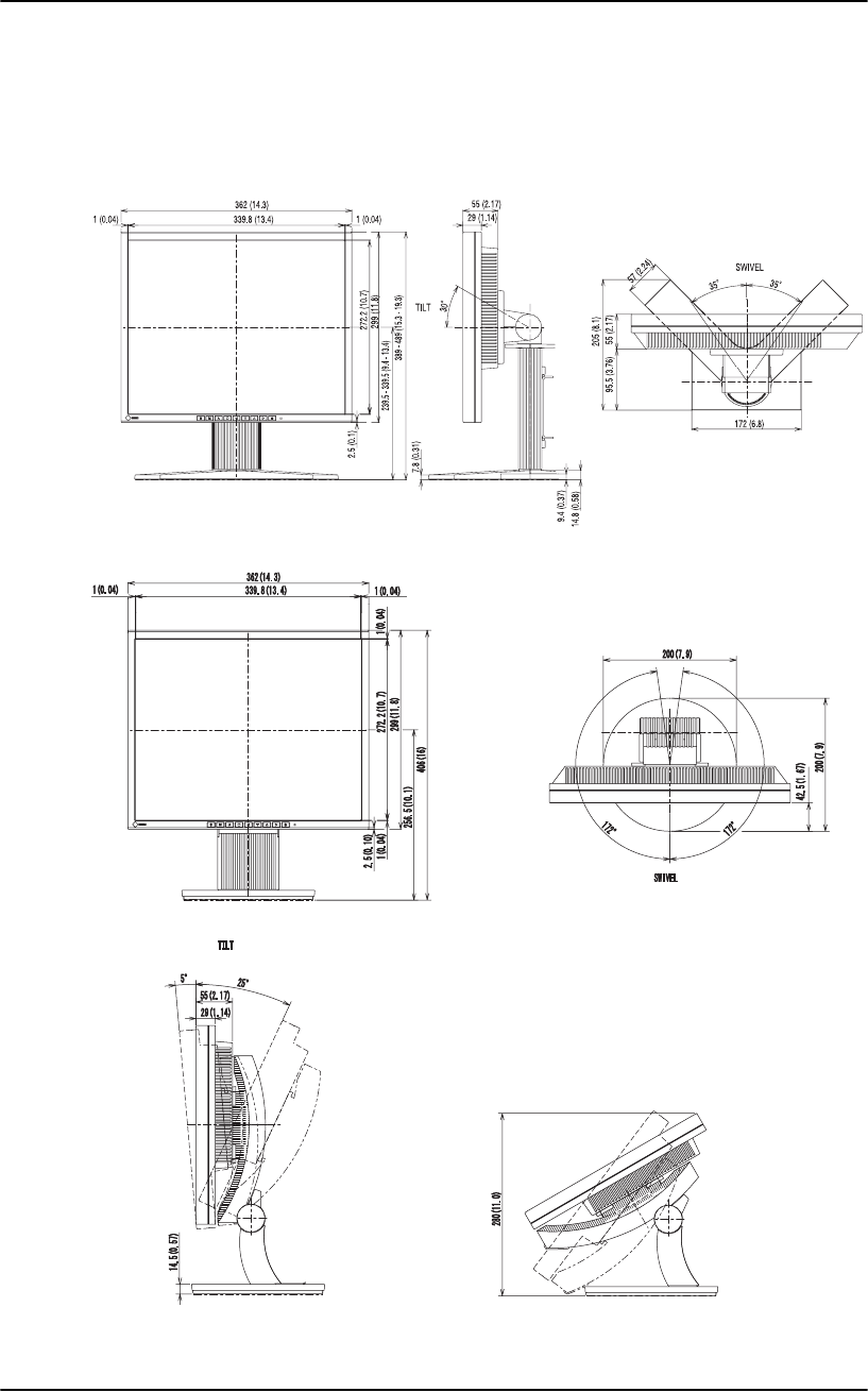 e) Der Standfuß muß die Möglichkeit zur Drehung des Bildschirmgerätes besitzen (max. ±