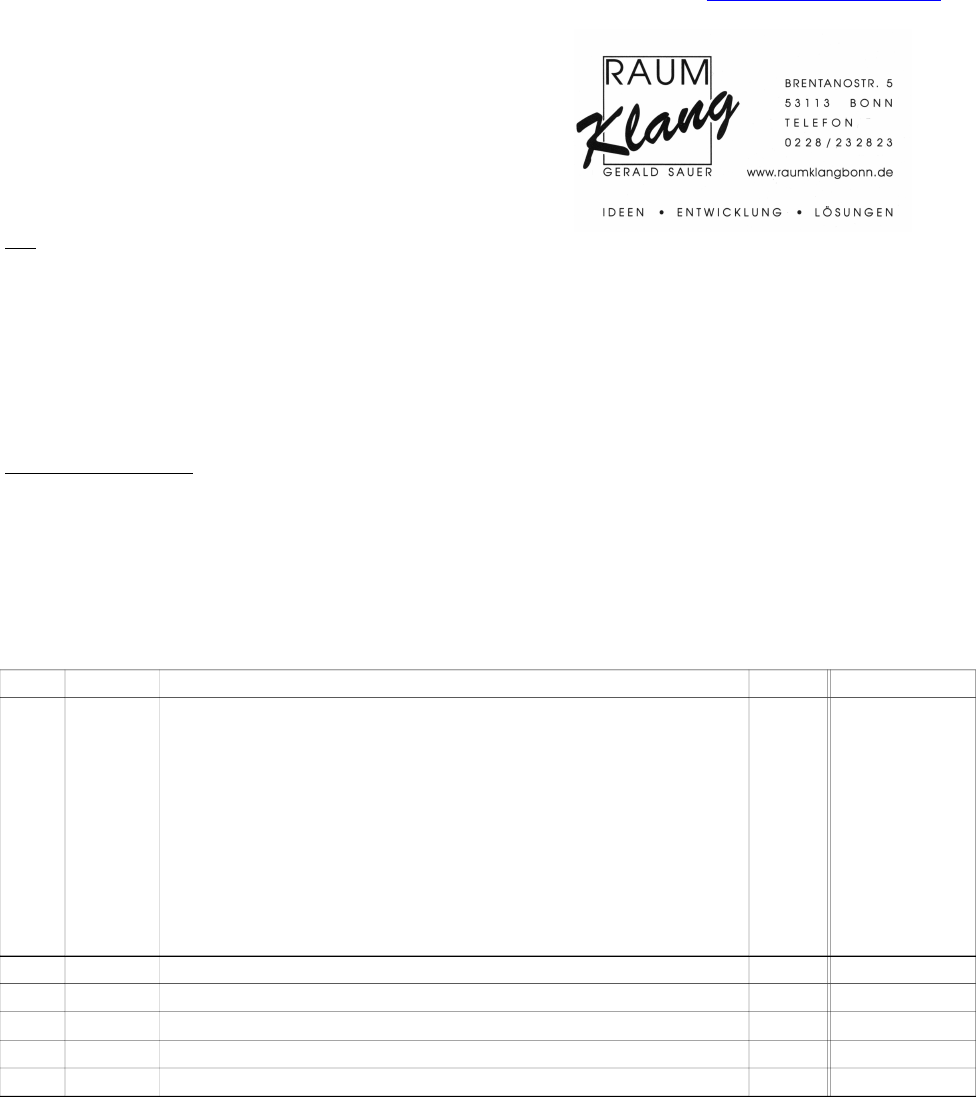 Raumklang Gerald Sauer, Brentanostr.5, 53113 Bonn,Tel.0228-232823, www.raumklangbonn.de
