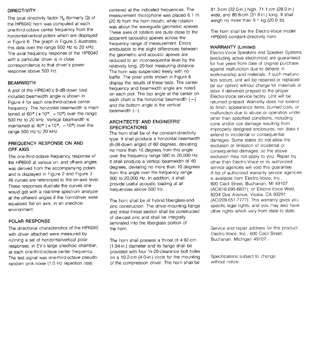 : Electro-Voice Electro-Voice-Constant-Directivity-Horn-Hp6040-Users-Manual-539005 electro-voice-constant-directivity-horn-hp6040-users-manual-539005 electro-voice pdf