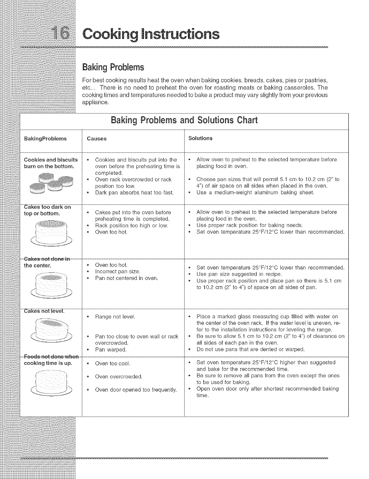o Many factors affect baking results, See Baking for hints, causes and corrections, See