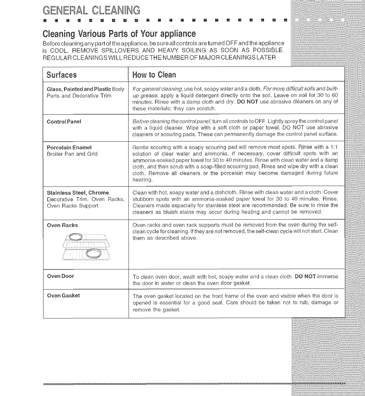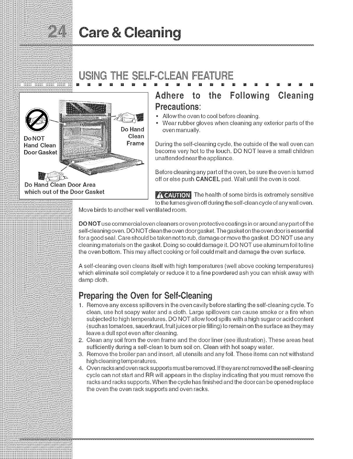 , Failure to clean bottom, from top of oven, frame of oven or door area outside oven seal,