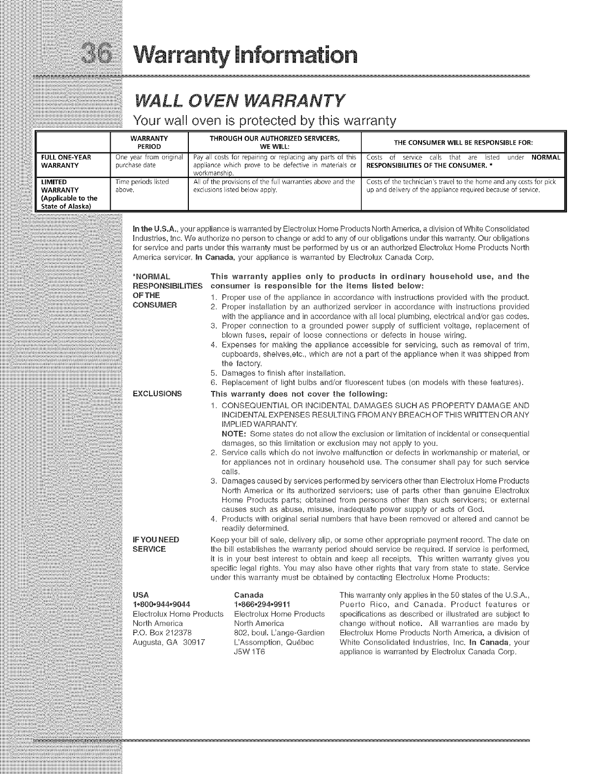 America servicer. In Canada, your appliance is warranted by Electrolux Canada Corp.