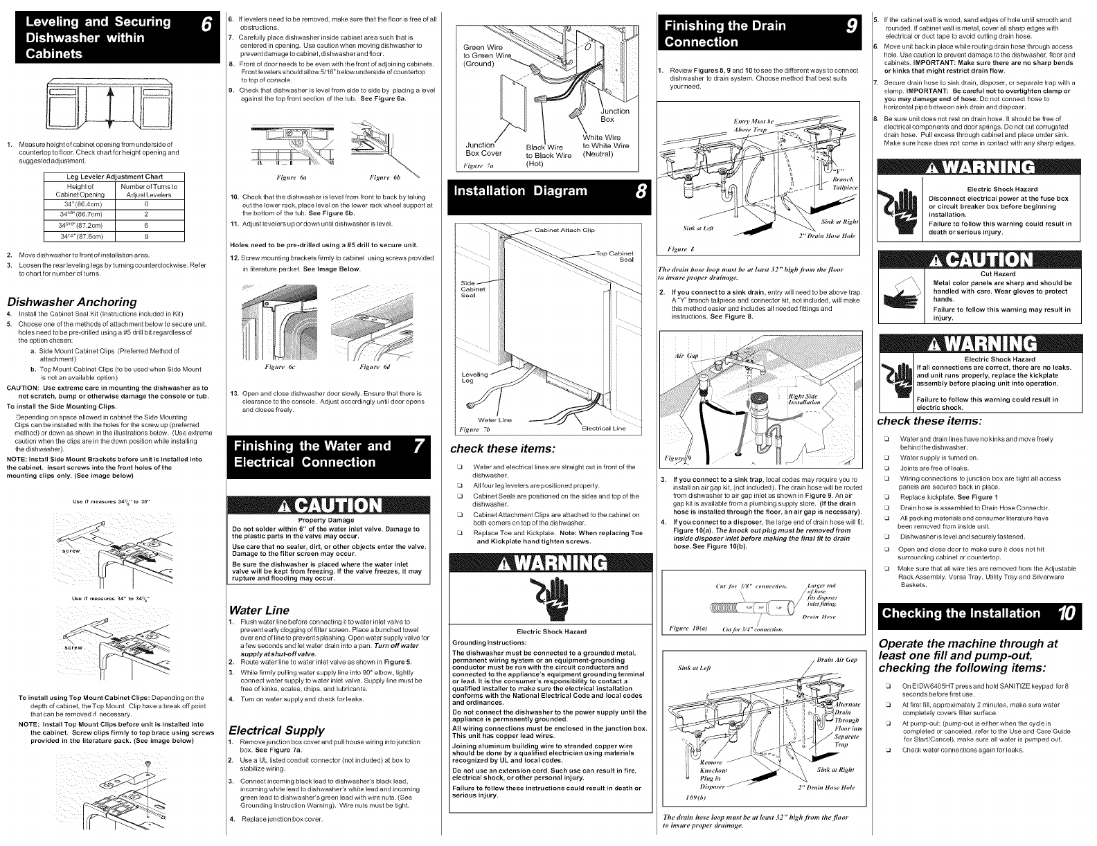 hole. Use caution to prevent damage to the dishwasher, floor and