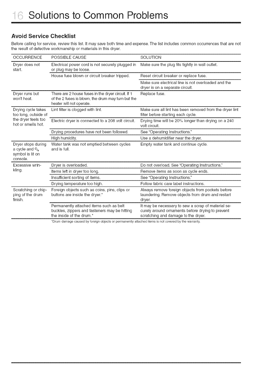 *Drum damage caused by foreign objects or permanently attached ilems is not covered by the warranty.