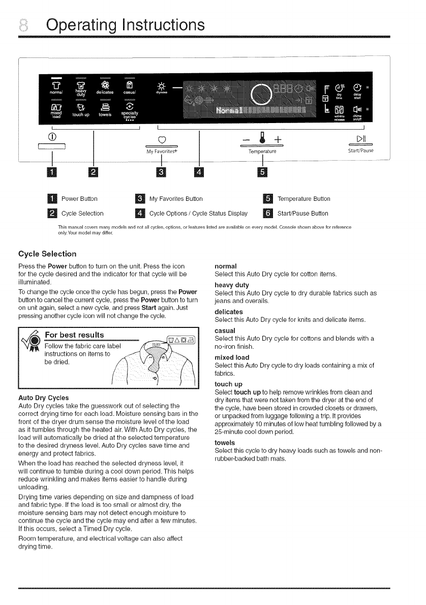 tionsfor your dryer. It also contains information about features