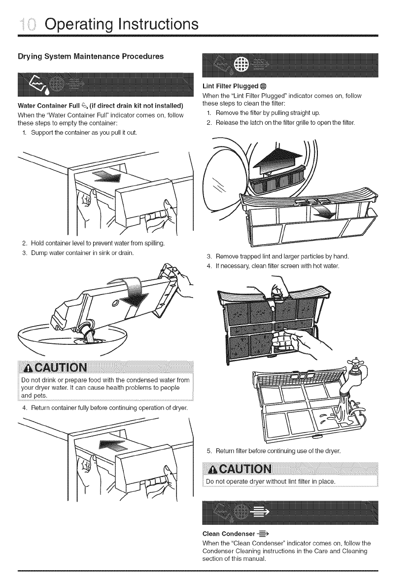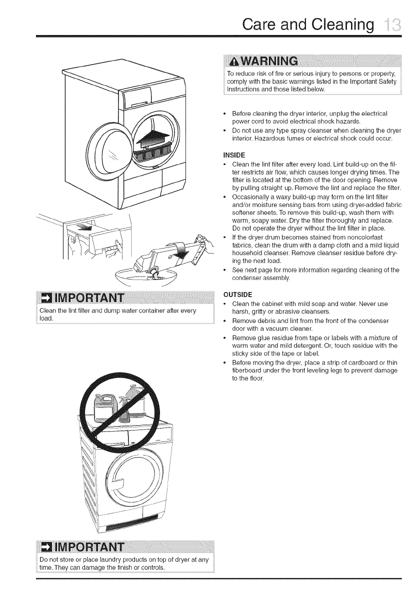 result in inefficient drying and possible fire. See Care and