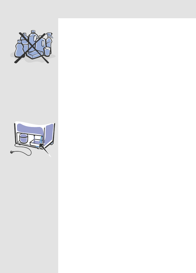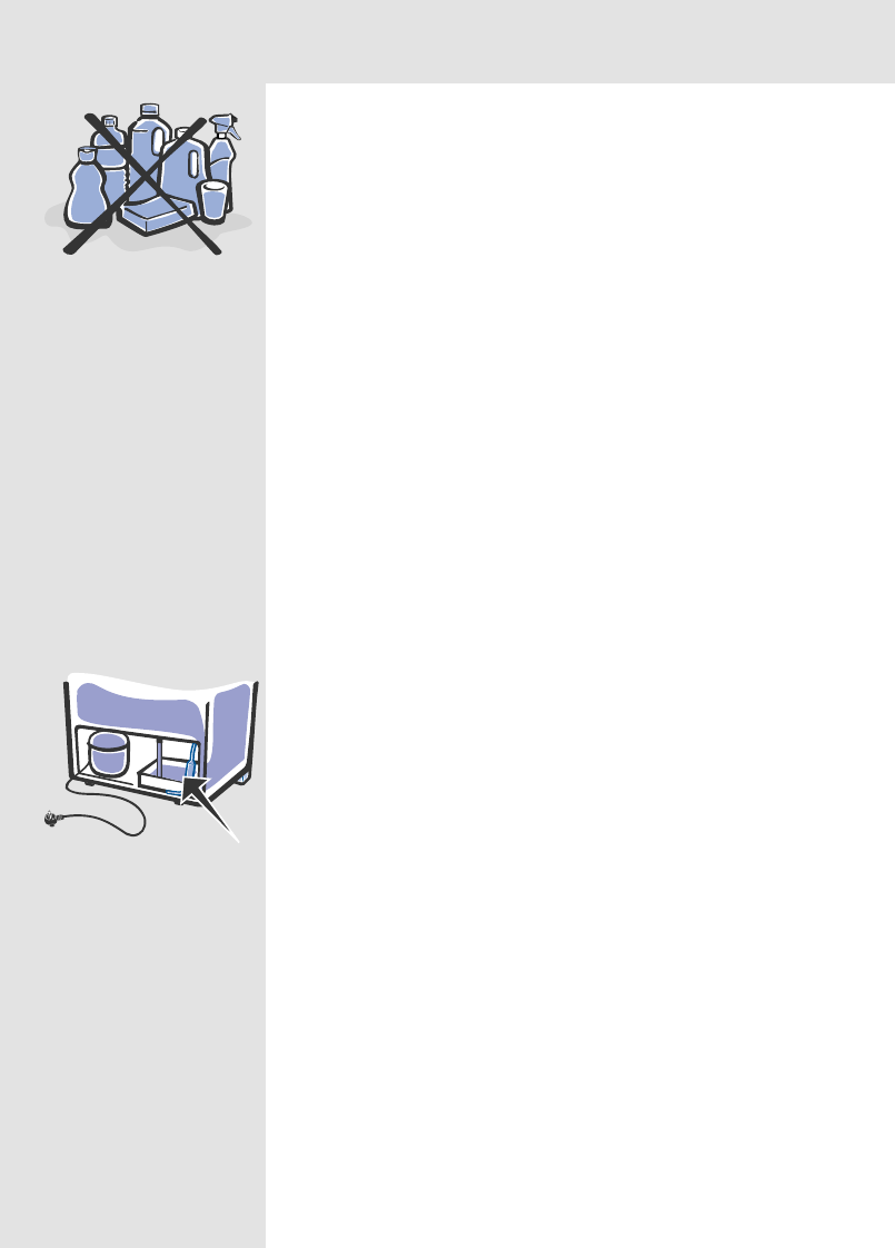 Never clean your refrigerator with flammable products, such as: