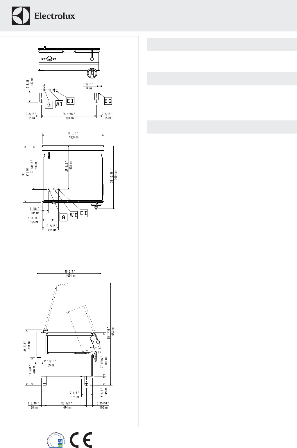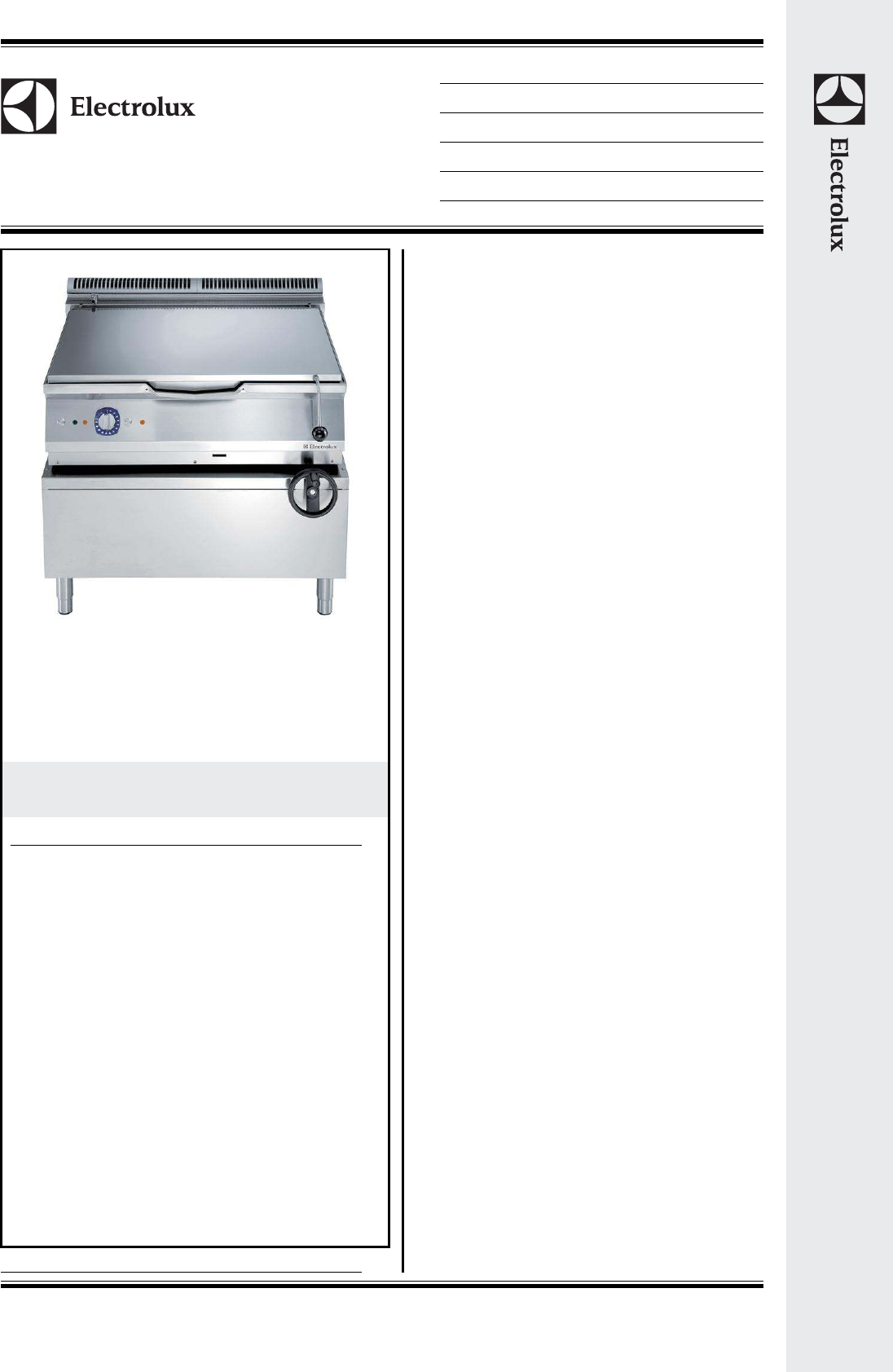 Unit to be Electrolux 900XP Gas Bratt Pan 100 liter capacity. Suitable for