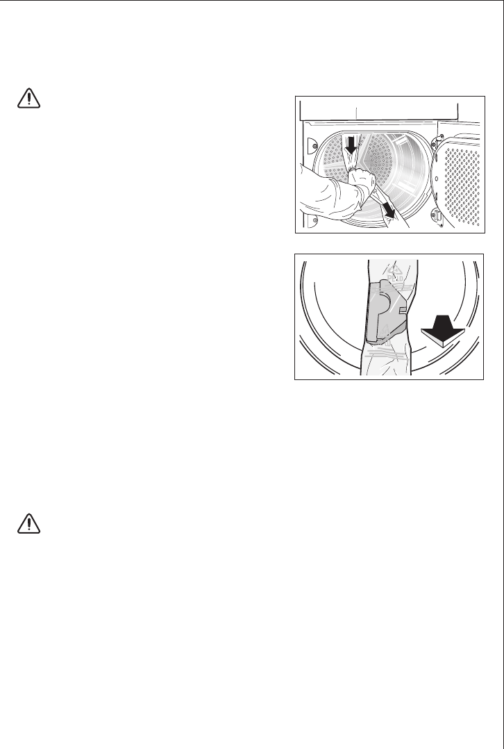 • Do not place heavily worn laundry items in the dryer. Risk of fire!
