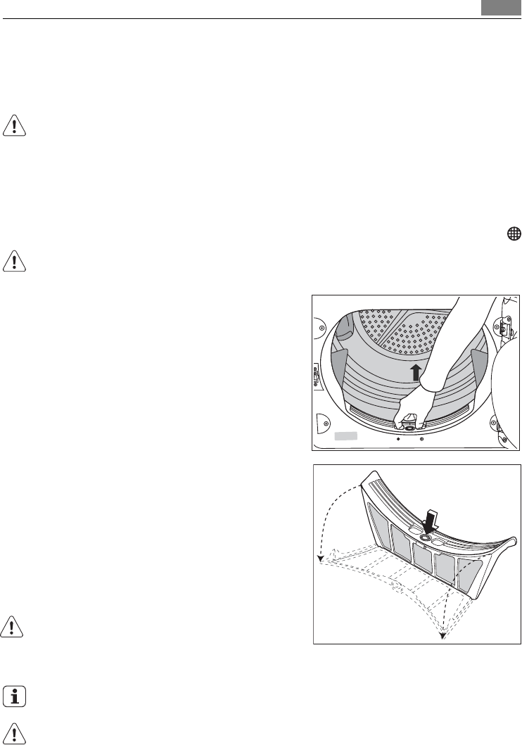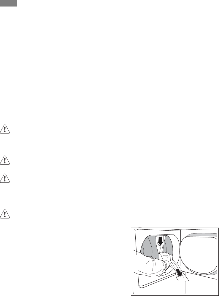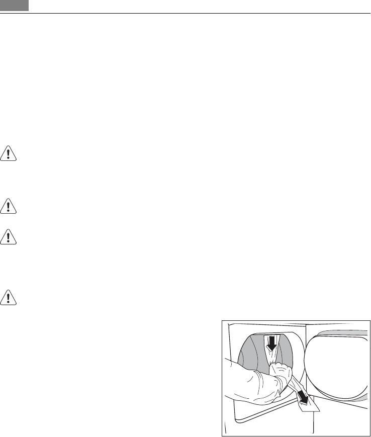 • Stellen Sie sicher, dass keine kleinen Haustiere in die Trommel klettern. Kontrollieren Sie