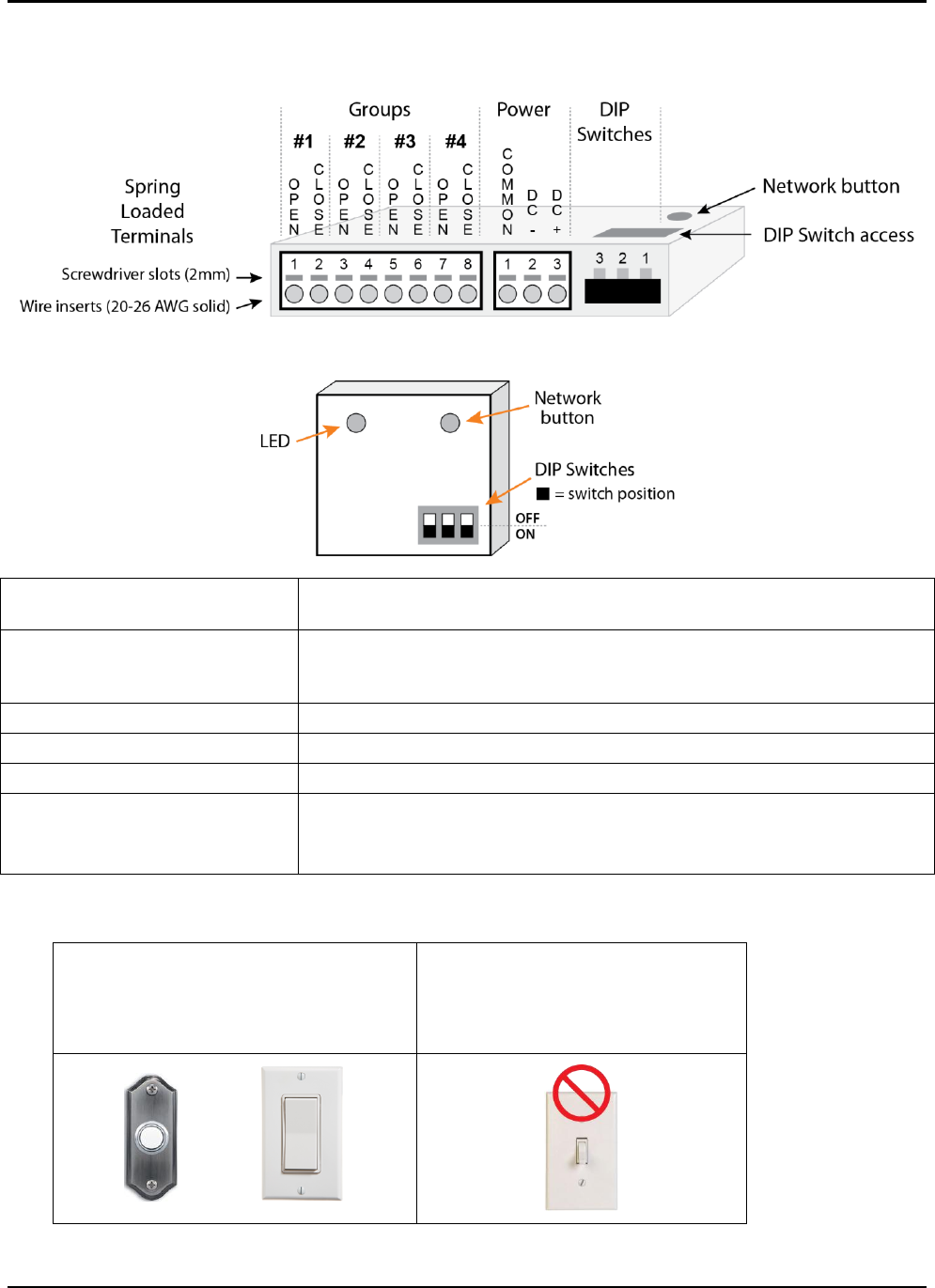 Open and Close contacts to control up to four groups of ESI RF devices.