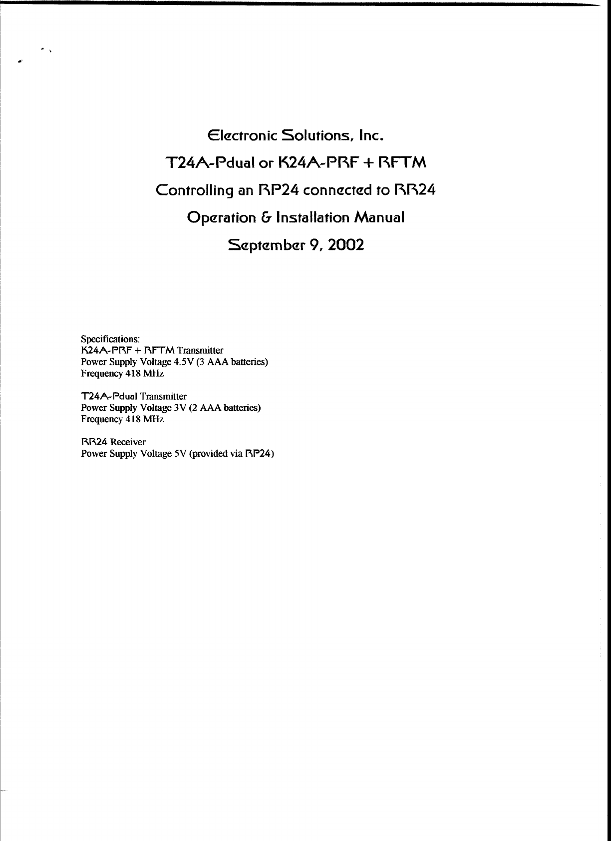 Electronic Solutions RFTM418 Remote Control User Manual