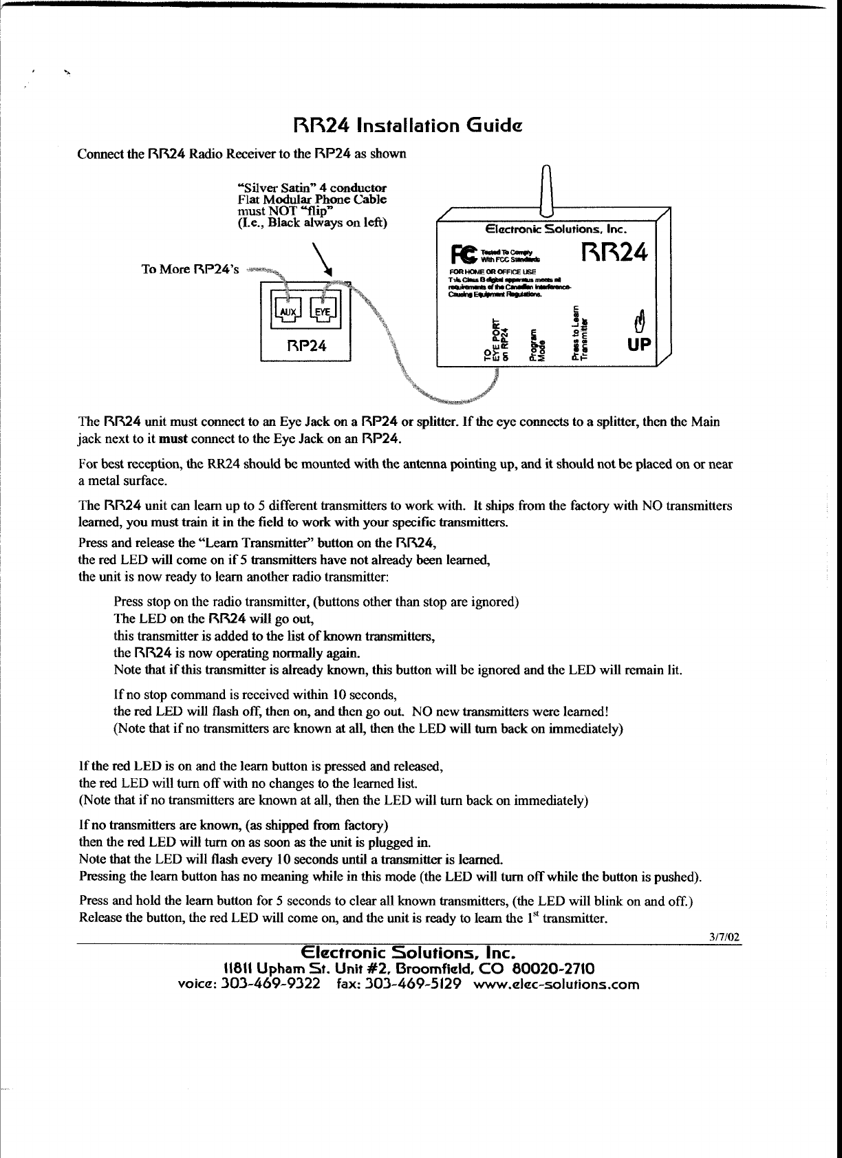 Electronic Solutions, Inc. Remote Control Users Manual