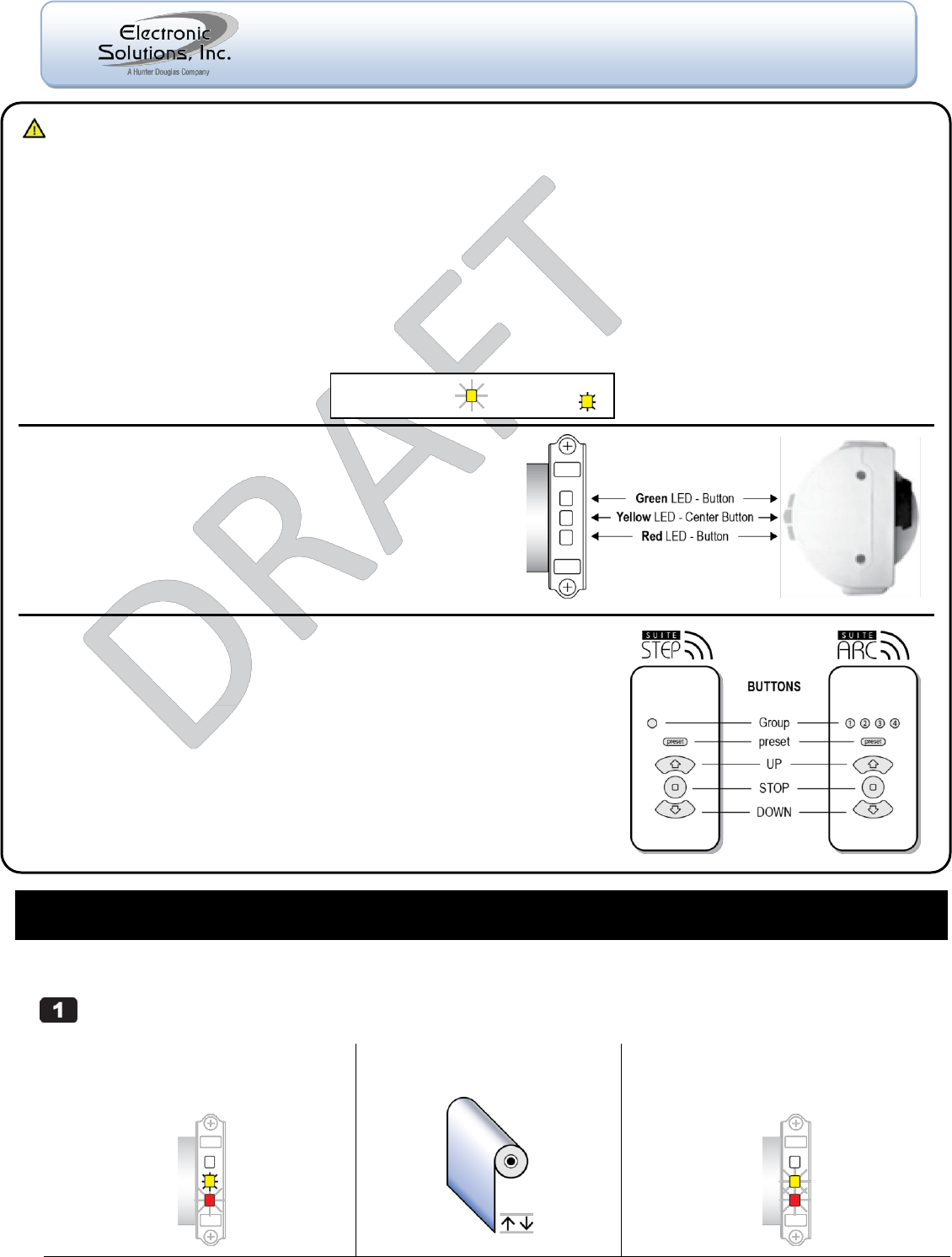 Red LED under “preset” is solid, and Yellow LED under Group 1 is solid.