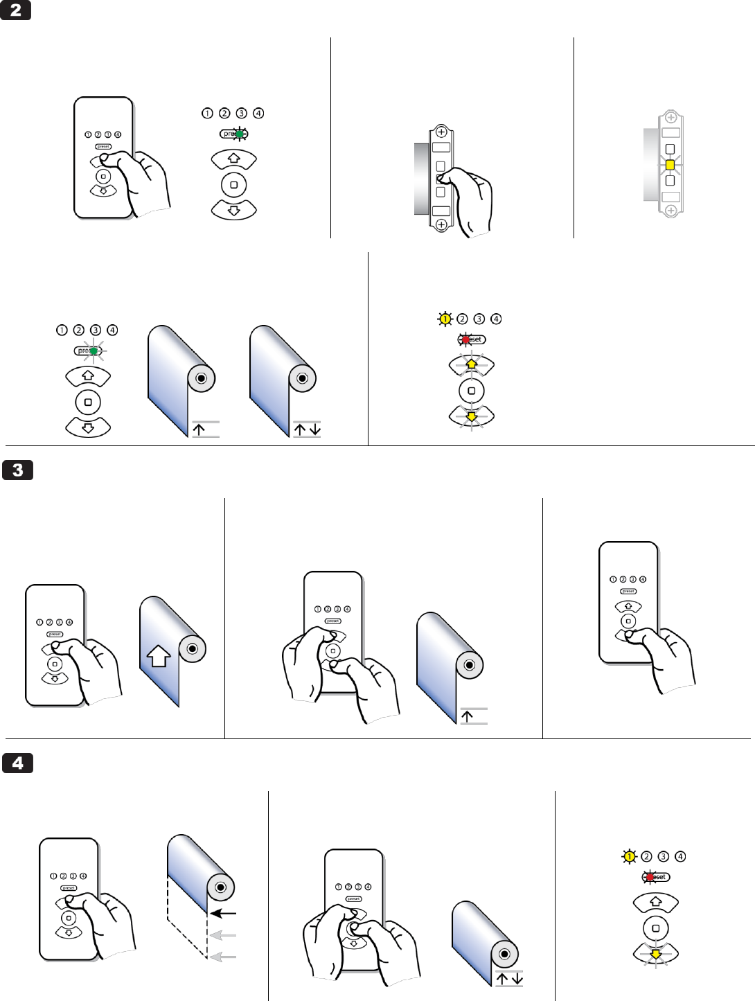 Green “preset” LED blinks once, and Hub motor jogs once, then jogs