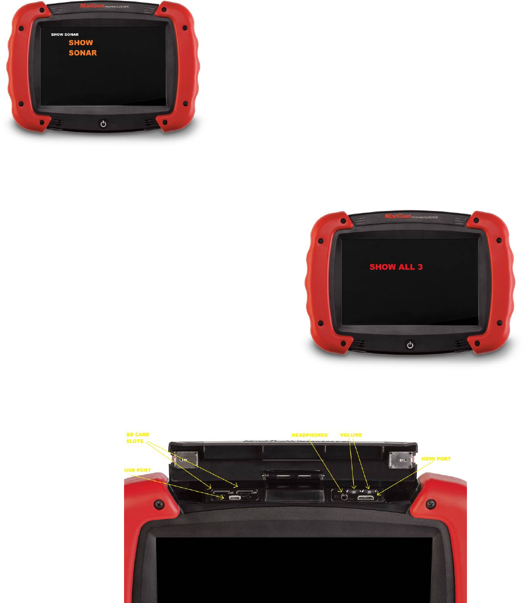On the back of the tablet there are 3 ports where the Sonar or Camera Modules can
