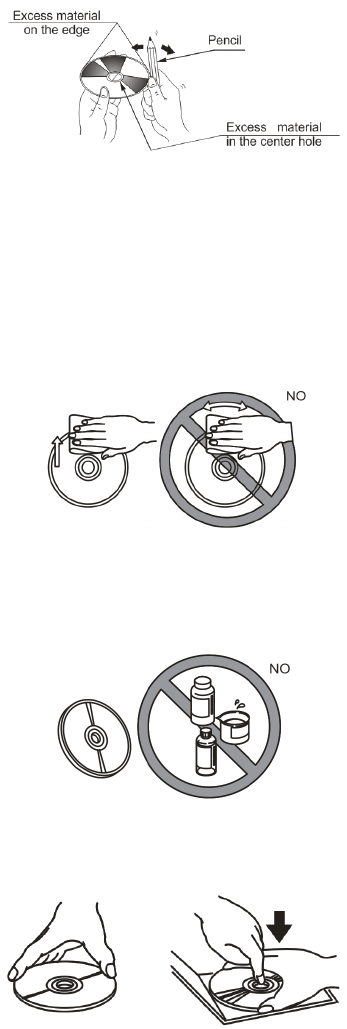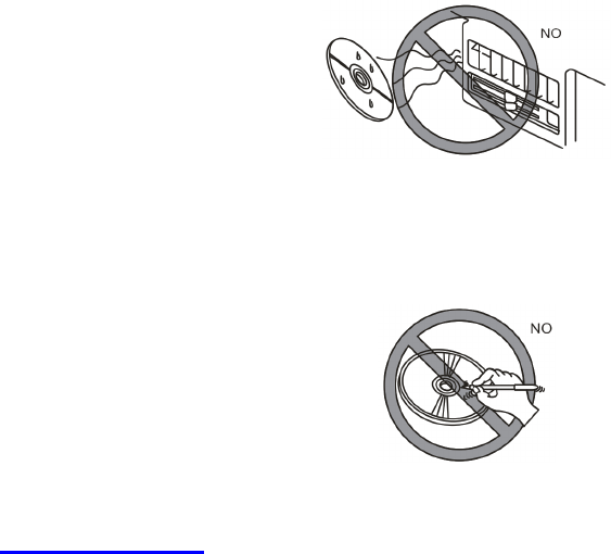 10.- Do not stick labels, tapes or papers on the surface of the disc, neither write on them