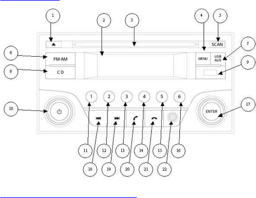 5.- SCAN, scanning button of station in radio mode and tracks in CD & USB mode.