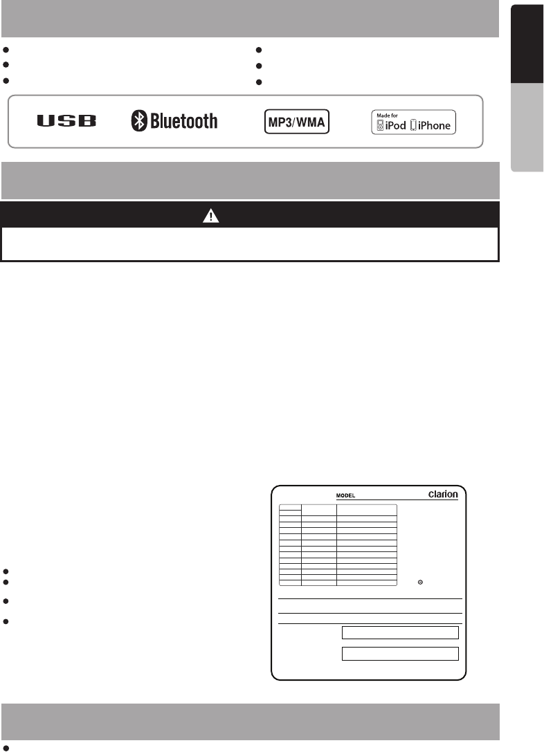 Electronica Clarion de C V FZ105BT USB/MP3/WMA DIGITAL MEDIA RECEVIER User Manual FZ105BT ENG IM Y 141204